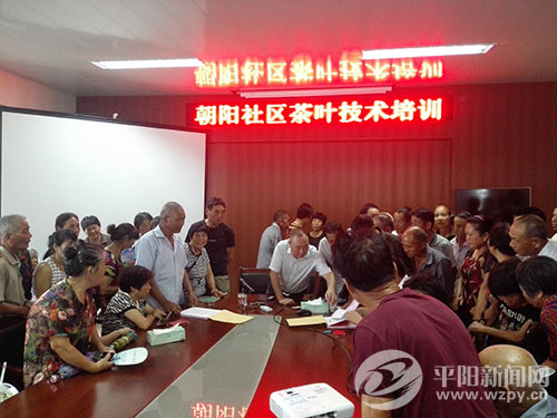 本网讯 (记者 张炜 通讯员 董占波 编辑 金雷雷) 为有效提升水头镇朝阳社区茶叶品质,提高当地茶农经济收入,6月29日,水头镇朝阳社区管委会联合温州市农科院茶叶产业专家服务团队、浙江子久文化股份有限公司(简称子久公司)等有关单位,精心组织了该区近100名茶叶种植户,在朝阳社区服务中心举办“有机茶园管理技术”培训会及“企业+农户”茶园统一管理及茶青收购合同签约会。