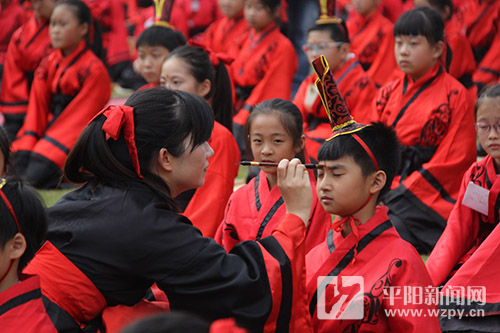 日前,南雁镇吴山广场上迎来了平阳新纪元学校(蓝田校区)四年级段学生的成长礼仪式。学生们从认识了解衣冠礼,沃盥礼,鞠躬礼开始,表达了对父母和老师的感恩之情。该校采用汉式成长礼告诉孩子们,成长礼的意义所在;知礼懂礼才能成为对社会、对祖国有用的人。